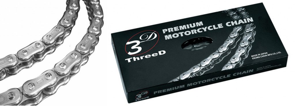 Řetěz EK ThreeD je výsledkem snahy vyrobit prémiový řetěz, který je nejen mimořádně odolný, ale zároveň i esteticky propracovaný. Vnější destičky s elegantním zakřivením snižují hmotnost a zvyšují atraktivitu, zatímco vnitřní destičky a čepy s odlehčovacími otvory dále snižují celkovou hmotnost řetězu.