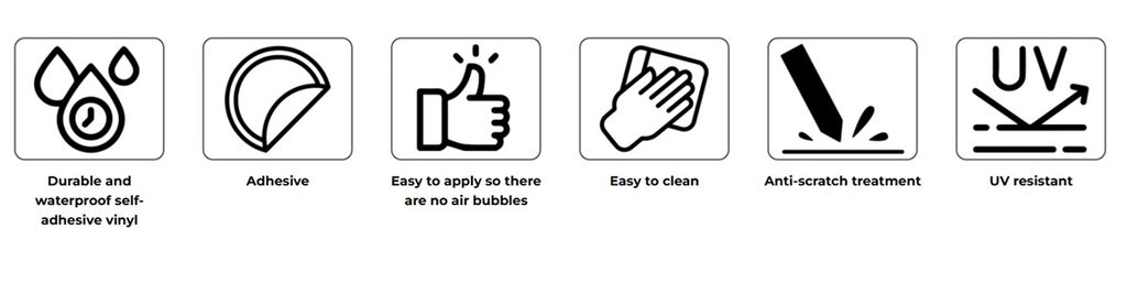 Instalace i demontáž je rychlá a snadná, nezanechává žádné stopy, fólie se nepoškrábe ani se neodlepí při mytí nebo nepříznivém počasí.