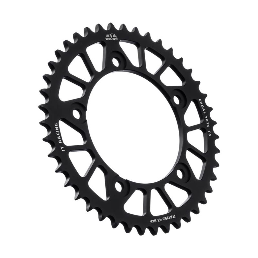 JT používá výhradně ty nejkvalitnější materiály. Pro závodní lehké rozety je to hliníková slitina letecké kvality 7075-T6, pro přední pastorky extrémně pevná slitina SCM420 (chrom-molybdenová ocel) a pro zadní ocelové rozety jako jediný výrobce používá ultra odolnou uhlíkovou ocel C49.