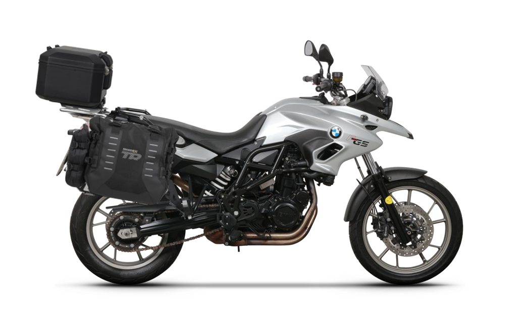 Kompletná sada sedlových brašní SHAD TERRA TR40 adventure a hliníkového kufra SHAD TERRA BLACK 37L vrátane montážnej sady SHAD BMW F 650 GS/ F 700 GS/ F 800 GS