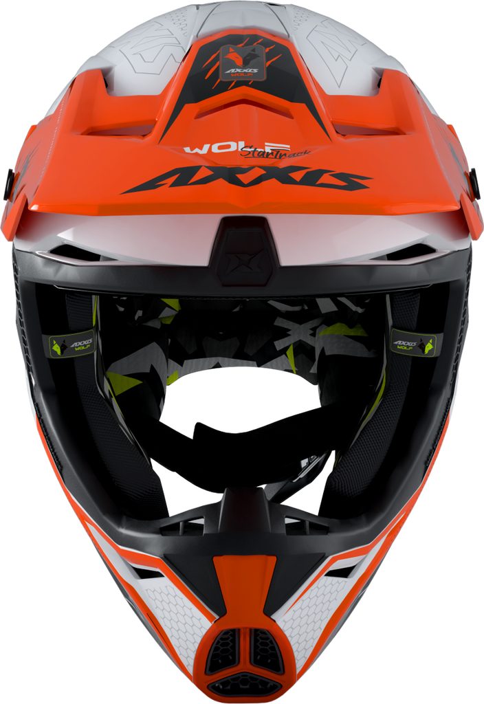 Přilba AXXIS WOLF vyniká atraktivním designem, robustní konstrukcí a je zaměřena na maximální ochranu a pohodlí motokrosového jezdce. Skořepina je vyrobena z ABS ve dvou velikostech. Díky tomu je možné zachovat u menších velikostí nižší hmotnost. WOLF váží ve velikostech XS-M pouhých 1400 ± 50 g a ve velikostech L-2XL 1500 ± 50 g.