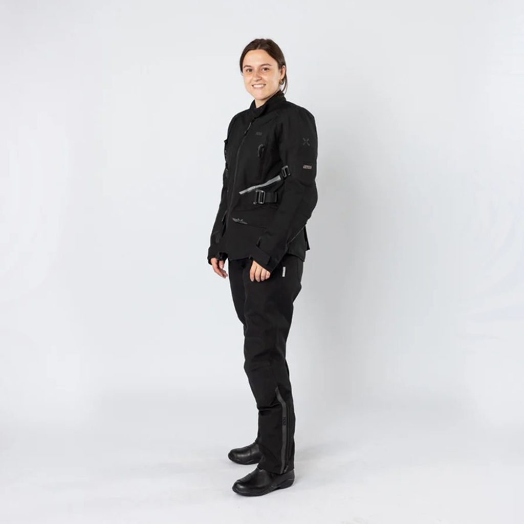 Pro co nejspolehlivější ochranu před povětrnostními vlivy a nehodami doporučujeme používat s dámskou laminovanou bundou Tourster-STX 1.0, kterou propojíte s kalhotami dlouhým zipem pro bezproblémovou integraci.