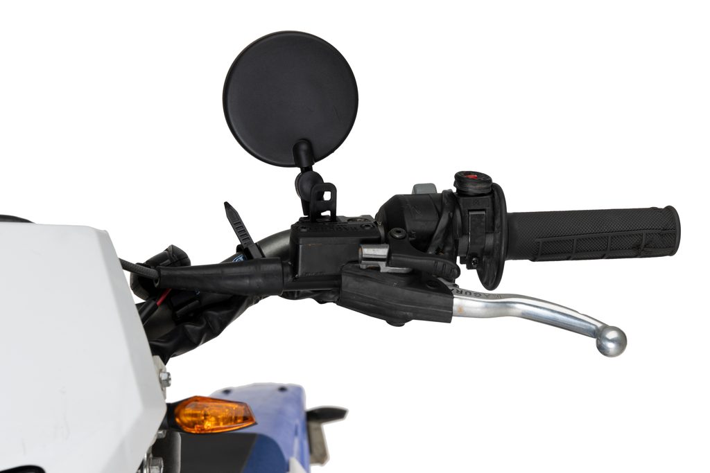 Zpětné zrcátko bez homologace, speciálně navržené pro enduro a trail motocykly, ideální pro kombinovanou jízdu po silnici i v terénu.